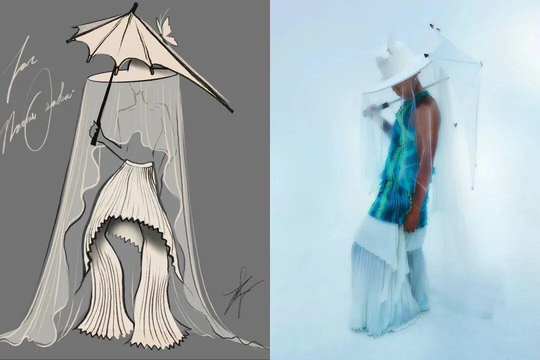 至于帽子上的那一朵蝴蝶,则是设计师Wun的一次致敬——2021年澳网比赛时有一只蝴蝶落到了大坂直美的身上,这一幕迅速走红网络,蝴蝶后来也多次成为大坂直美服装中的点缀元素。